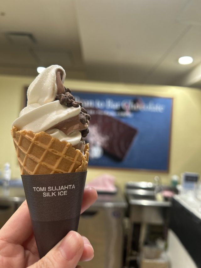 チョコだけのソフトクリームにしようかとっても悩みましたが・・・ジャージーミルクに惹かれミックスソフトにしました!ソフトクリームもおいしすぎましたが、カカオニブのザクザク食感がたまりません!仕事終わりの身体にとっても沁みました!!