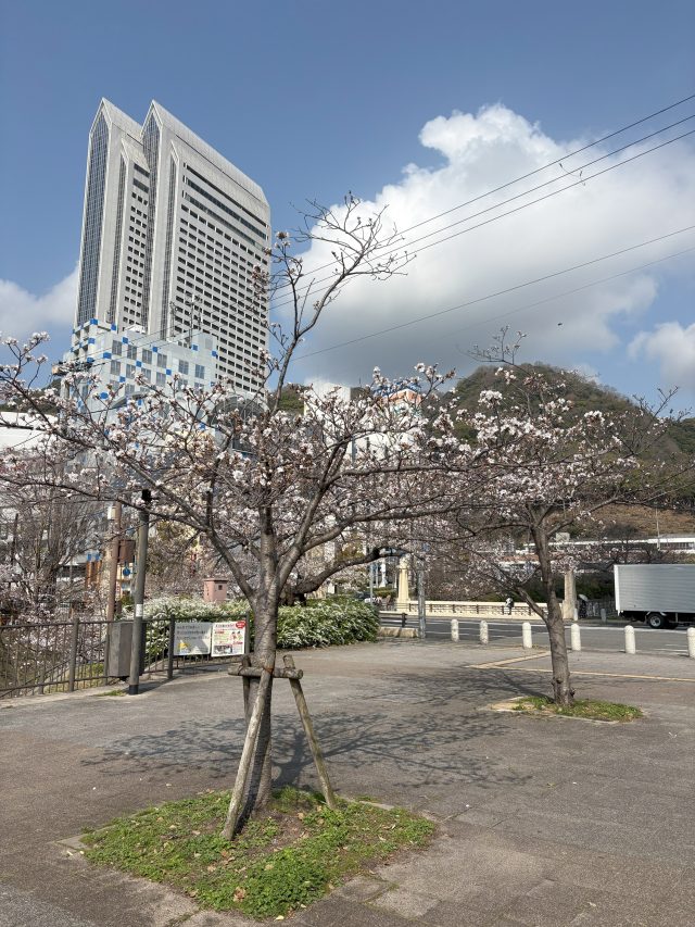 新神戸から三ノ宮まで続く生田川の周りでは、3月末の今朝9:00時点で