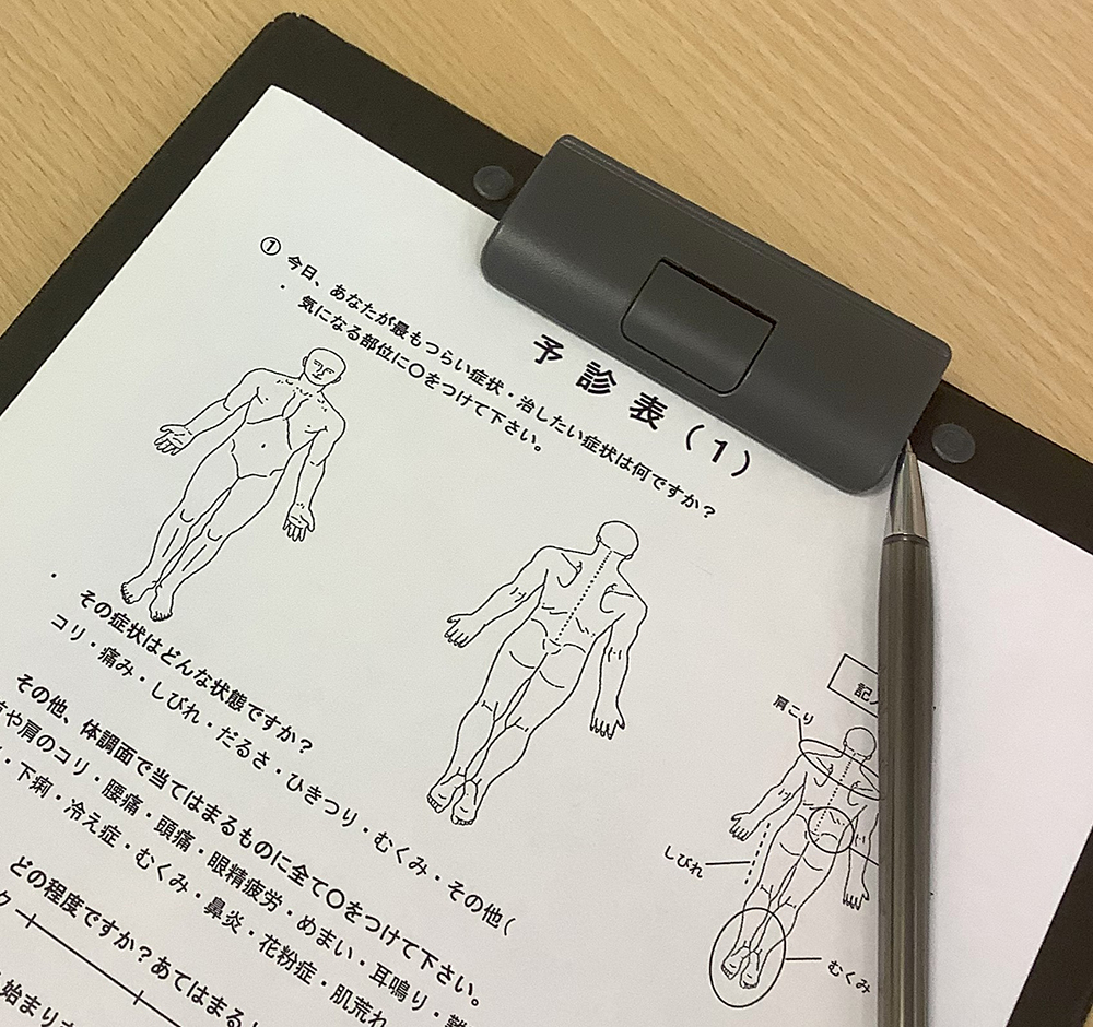 現在のお悩みはもちろん、睡眠、食事など生活習慣について答えられる範囲でお答えいただき、そこから原因などを探ります。